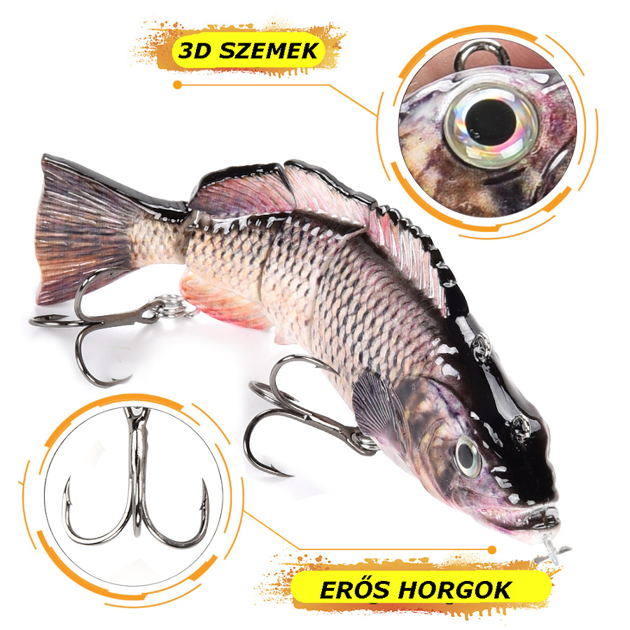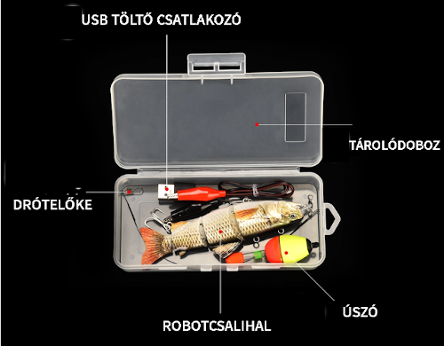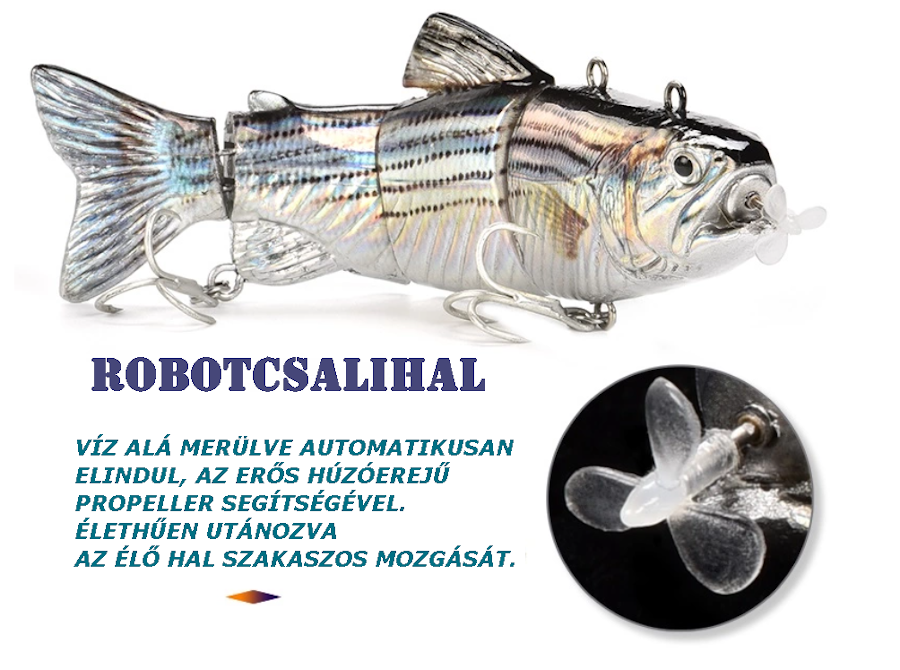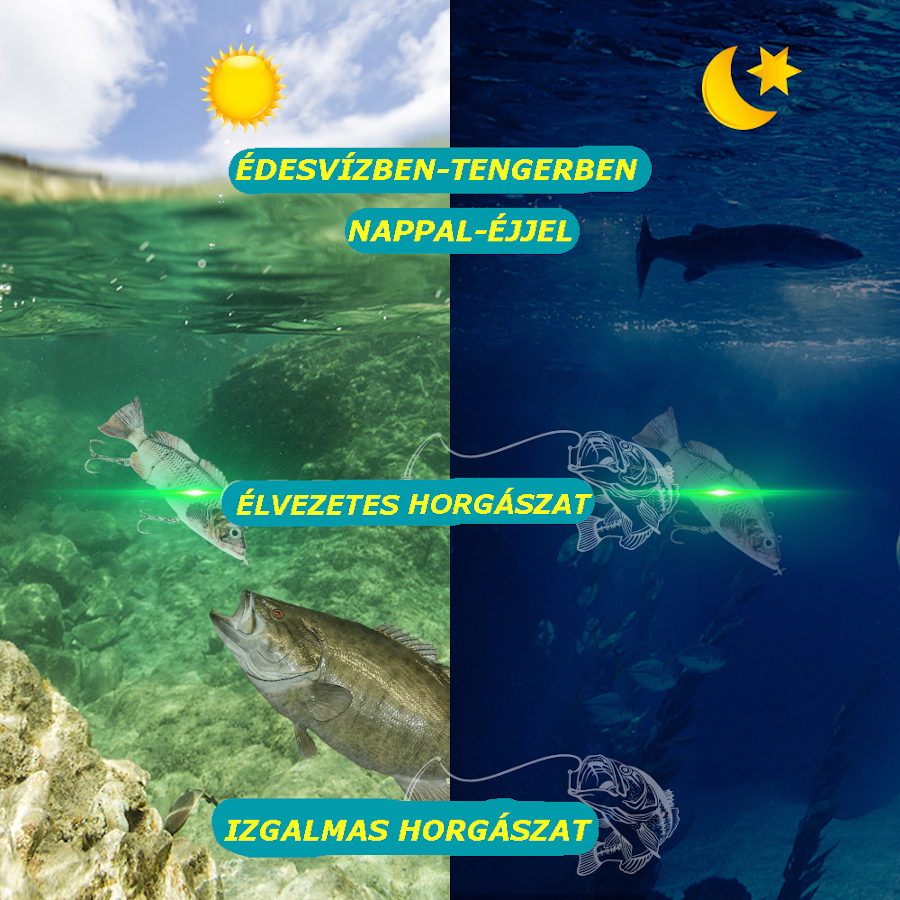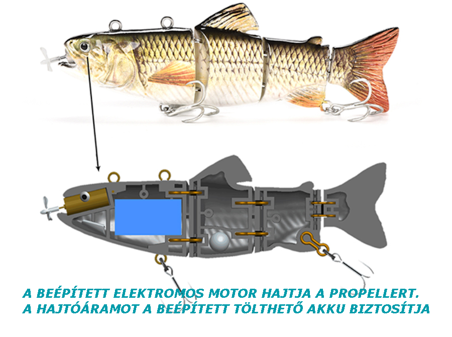 A robotcsalihal víz alá merülés után automatikusan elindul és élethűen utánozza az élő csalihal mozgását.